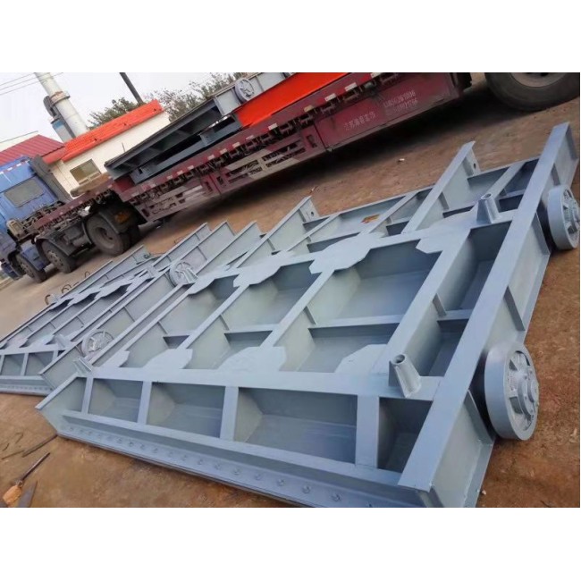 門葉支承部分應用較多的是支承、滾輪支承和鏈輪支承等。支承部分也是門葉的行走部分。支承是裝在門葉主體邊梁處的滑塊。其在固結于門槽內的支承軌道上作運動,處是面或線。支承是裝在門葉邊梁上的輪子,其在門槽軌道上作運動,處是點或線。鏈輪支承是環(huán)繞門葉邊柱由一系列圓柱滾子組成的形似鏈條式的閉合鏈環(huán)。這種支承的閘門也稱履帶式閘門。支平面閘門承的閘門阻力大,啟門力大;滾輪支承阻力小,啟門力也小,但閘門門葉較重;鏈輪支承也作,其優(yōu)點是由數目較多的小滾柱承受閘門的水壓力,單個輪壓小,使得門槽內敷設的軌道斷面小、重量輕。滾輪支承的閘門,根據閘門特征及梁格布置設有懸臂(外伸)輪、簡支輪和臺車式輪組。