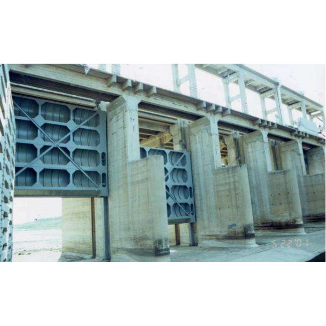 另外,有些閘門如翻板閘門可借助水力自動啟閉,稱為水力自動閘門。選擇閘門形式需要考慮其在水工建筑物中的位置、尺寸、設計水頭、運用條件、制造能力和安裝技術水平等因素,要求做到泄流時水流條件好、止水嚴密、啟閉力小、操作簡便靈活、檢修維護方便等。平面閘門和弧形閘門是最常用的門型。在工作閘門中,大型露頂式閘門和高水頭潛孔式閘門多用弧形閘門,船閘上多用人字閘門和橫拉閘門,檢修閘門和事故閘門一般都用平面閘門。制造門葉的材料近代多用鋼材,而鋼筋混凝土多用做需要借自重關閉施工導流底孔的封堵閘門。此外,在壓力管道中使用的將門葉、外殼和啟閉機械組成一體的控制設施,通稱閥門。